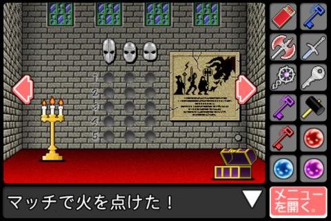 キャンドルに「マッチ」で火をつけると、壁にあぶり出しが現れる。