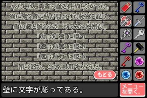 左の壁の文字を調べて、『力>速>魔>力』の関係を確認。