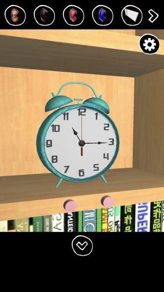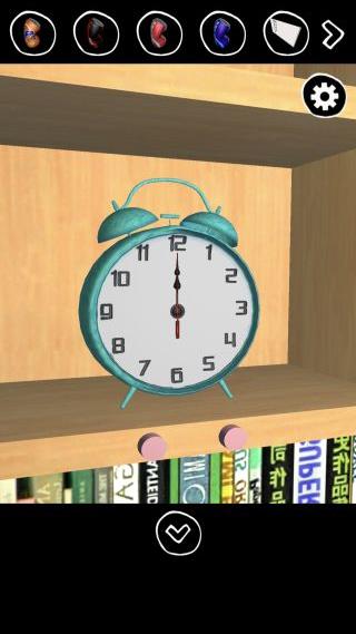 本棚の時計を拡大して、下の2つのボタンで『23:15』に合わせる。