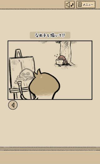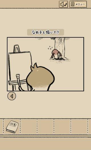 なめよん ~なめこの脱出ゲーム~ 無料 4.3 評価する 送信する BEEWORKS GAMES 19話 なめ子を描いて!! 右から「サッカーボール」を入手。 木に「サッカーボール」をぶつける。 「カブトムシ」と「詩集」を入手。 右に移動して、木の右のなめこに「カブトムシ」を使う。 なめ子に「詩集」を渡す。 1話 なめこに戻せ!! 2話 楽しいクリスマスを始めろ! 3話 脱出せよ!! 4話 満腹になれ!! 5話 虎を捕らえよ 6話 『クリスマス』を作れ!! 7話 ちがう所を4つ見つけろ!! 8話 黄金なめこを探せ!! 9話 スマホを探せ!! 10話 バレるな!! 11話 なめこを助けろ!! 12話 変化した所を4つ見つけろ!! 13話 亀を助けろ!! 14話 黄金なめこを探せ!!2 15話 エリンギ丼を注文しろ!! 16話 カビ回避 17話 なめこを助けろ!!2 18話 特賞をゲットしろ!! 19話 なめ子を描いて!! 20話 亀を助けろ!!2 21話 上司にあわせて注文しろ!! 22話 黄金なめこを探せ!!3 23話 ミカンを落とせ!! 24話 黄金なめこを生やせ!! 25話 虎から逃げろ!! 26話 紙を手に入れろ!! 27話 深海なめこを釣り上げろ!! 28話 脱出せよ!!2 その1 28話 脱出せよ!!2 その2