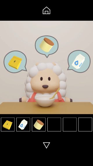 羊の前に移動して、「小麦粉」「ビン」「牛乳パック」を渡す。