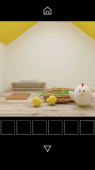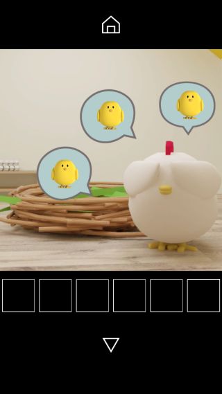 家に入って、ニワトリを調べるとヒヨコが逃げ出す。