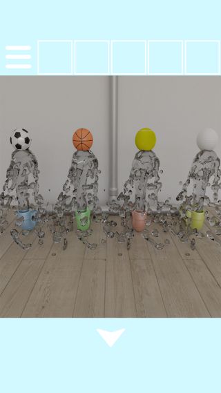 『サッカーボール、バスケットボール、テニスボール、バレーボール』に合わせる。