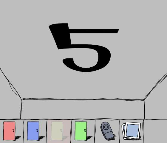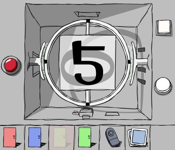 「黄色い扉」を取り付けて、天井の『5』の向きを確認。