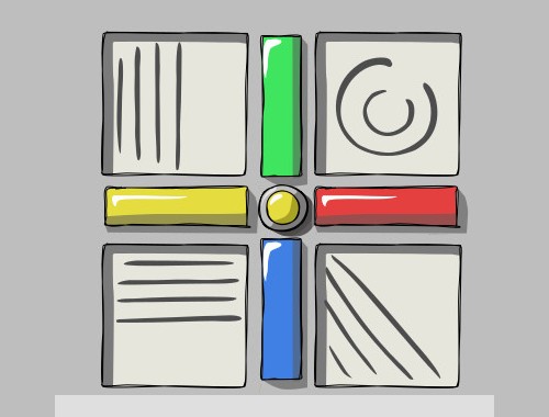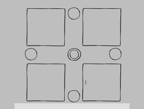 4つの図形は、隣り合う色の扉を回転させたときのモーションの形に合わせる。