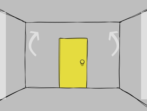 部屋を回転させていき、『青→黄=横、黄→緑=縦』を確認。