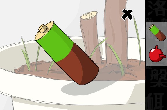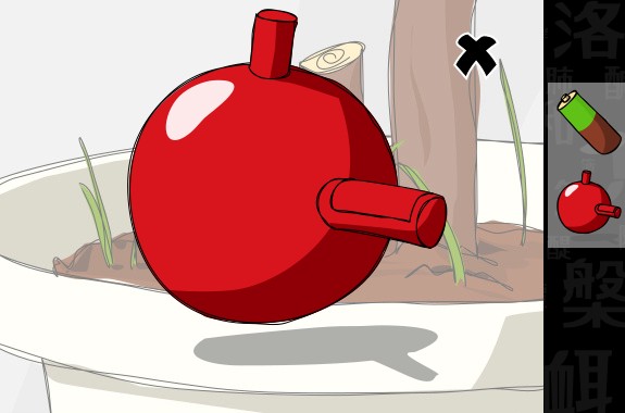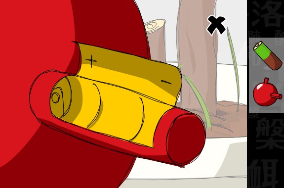 左の植木を調べて、「電池」を入手。