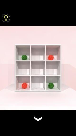 左上の棚にあるボールの数『緑2、赤2』を確認して、左に移動。