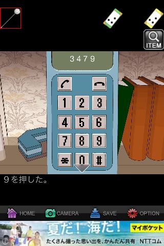 紙にあった配置で『3479』を押して最後に通話ボタンを押す。