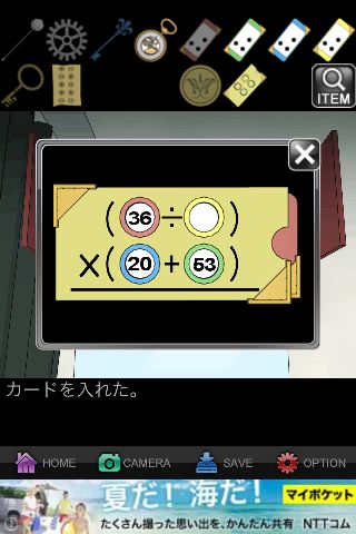 「カード」に「赤いカード」を入れて、赤丸ぼ数字『36』を覚えておく。