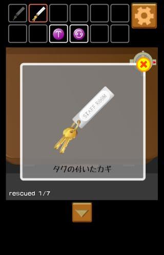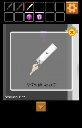 「タグの付いたカギ」を入手して、廊下に出て手前に2回戻る。