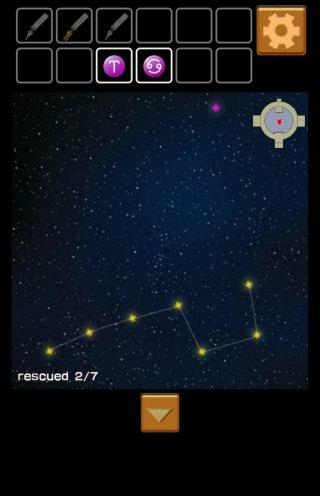 北斗七星と右上の紫の星を確認。
