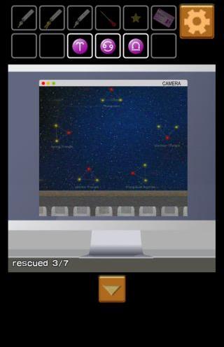 左のコンピュータを拡大して、赤い星の位置を確認。