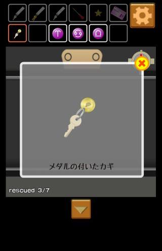 左の扉を拡大して、「メダルの付いたカギ」で開ける。