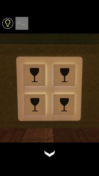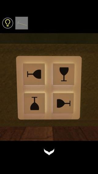 4枚の絵を拡大して、持っているグラスの向き『左上=右、右上=上、左下=下、右下=左』を確認。