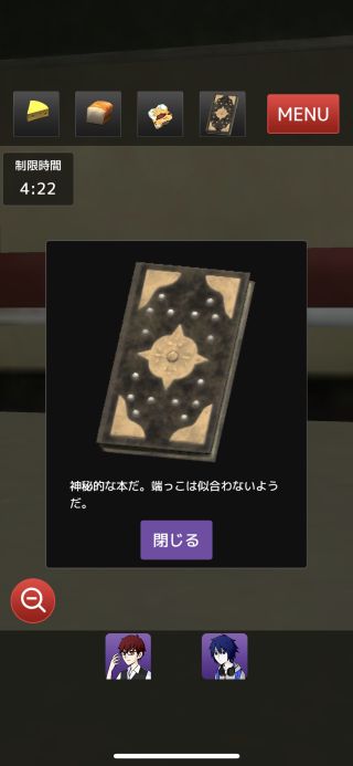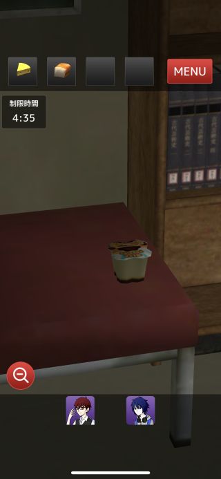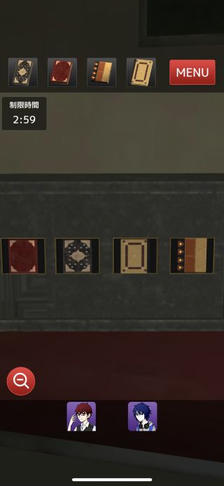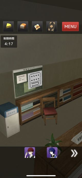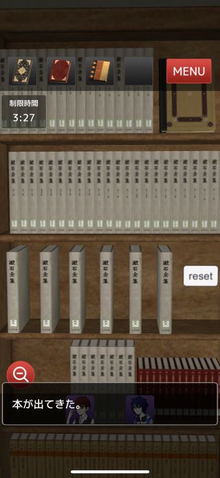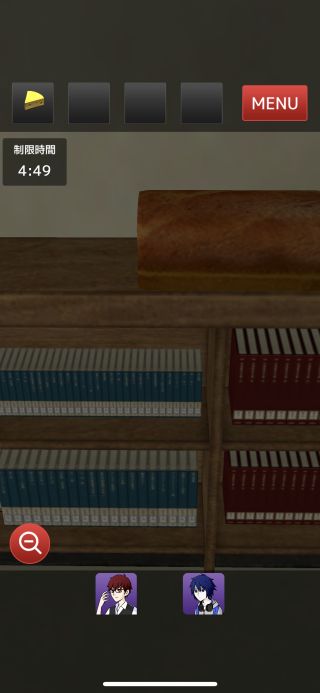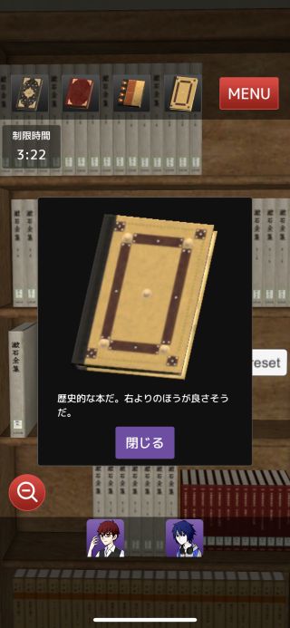 本棚の本を拡大して、『左から4番目、右から3番目、左から2番目、左から6番目』の順で押す。