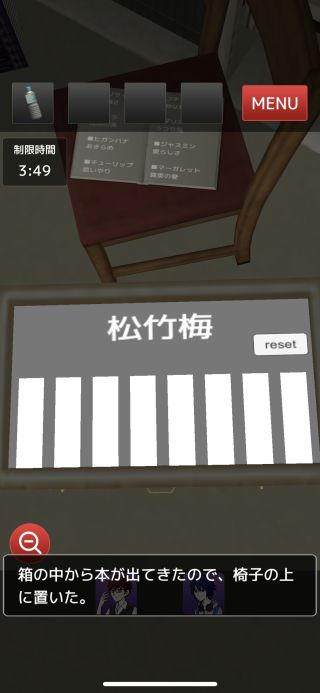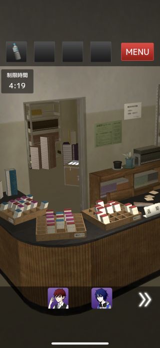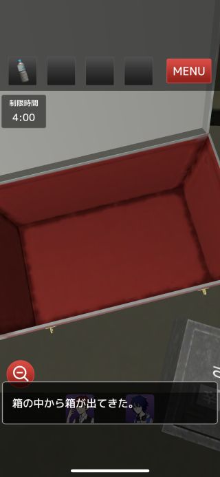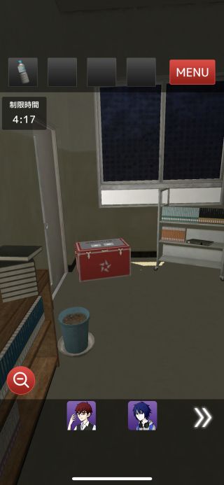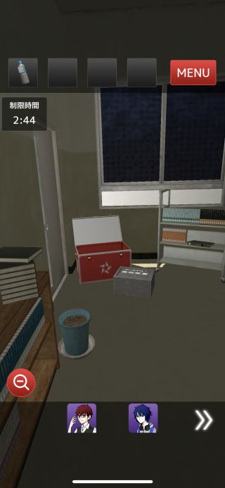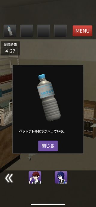 右に移動して、棚の上から「水の入ったペットボトル」を入手。