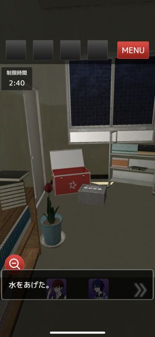 左に移動して、植木鉢に「水の入ったペットボトル」を使う。