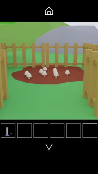 柵の装置を『キノコ、花、テント、トロッコ』の順で押す。
