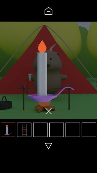 焚き火で「ロウソク」に火をつける。