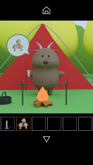 「キノコ」を入手して、テントの前のバッファローに話しかける。