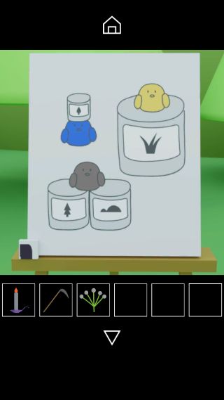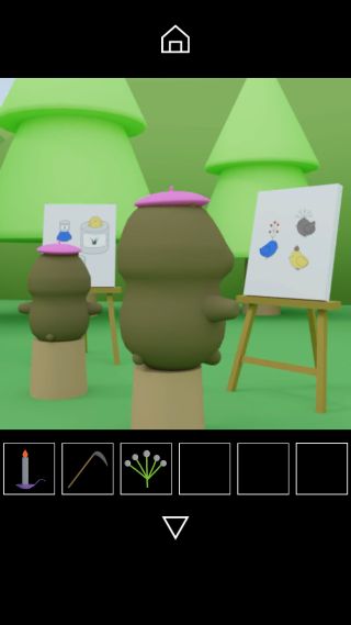 左の絵を描いている動物の前へ。