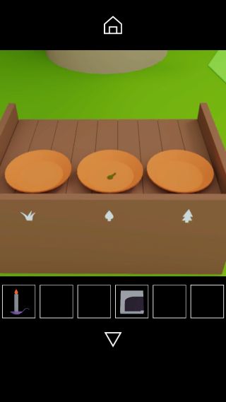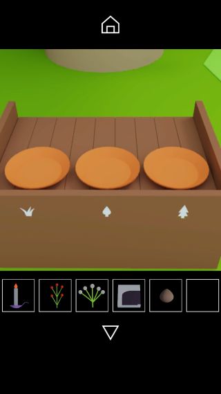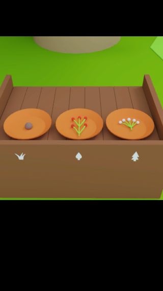 皿を拡大して、先ほどの絵をヒントに左から「木の実」「赤い花」「白い花」を置く。
