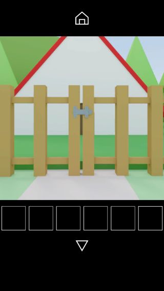 奥の柵を開けて、家の前へ。