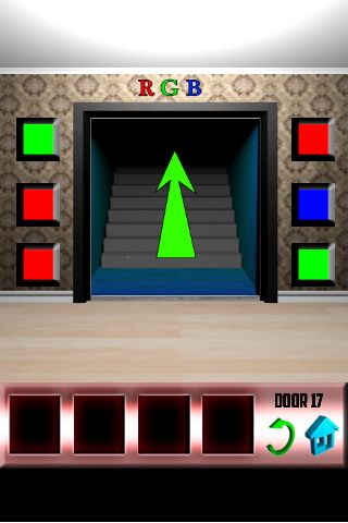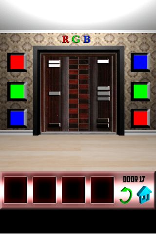 扉に書かれた棒の数の色に左右のボタンを合わせる。
