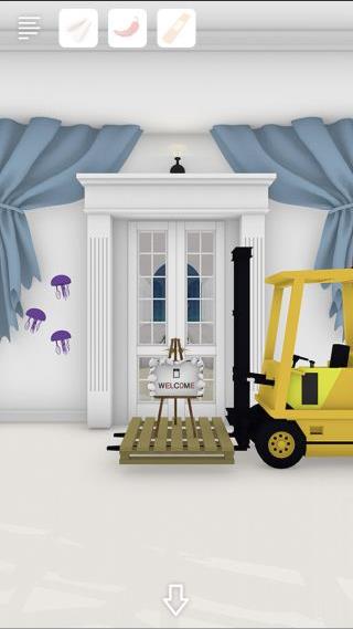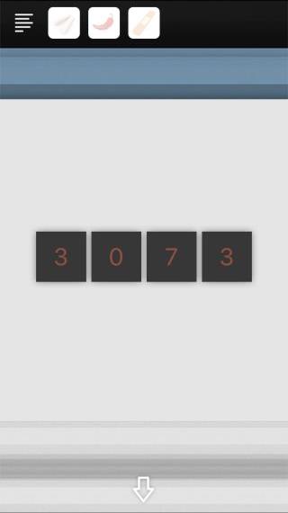 右のフォークリフトの上のイーゼルを拡大して、茶色の文字が逆さにすると数字の『3073』になるのを確認。