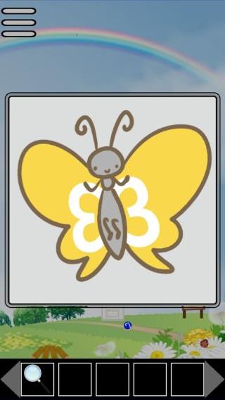 蝶に「虫眼鏡」を使って、『黄=3』を確認。