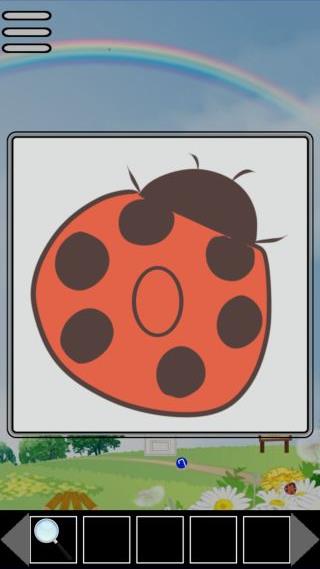 てんとう虫に「虫眼鏡」を使って、『赤=0』を確認。