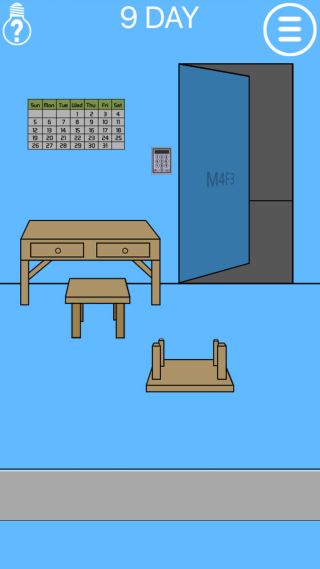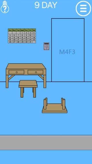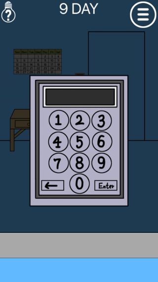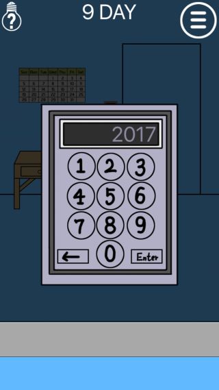 ママは私を家に閉じ込めた - 脱出ゲーム 無料 3.6 評価する 送信する 99key 9DAY 扉の『M4F3』を確認して、カレンダーを拡大。 『M(月曜日)の上から4マス目=20、F(金曜日)の上から3マス目=17』を確認。 壁のキーパッドを拡大して、『2017』を入力する。 扉を開ける。 1DAY 2DAY 3DAY 4DAY 5DAY 6DAY 7DAY 8DAY 9DAY 10DAY 11DAY 12DAY 13DAY 14DAY 15DAY 16DAY 17DAY 18DAY 19DAY 20DAY 21DAY 22DAY 23DAY 24DAY 25DAY 26DAY 27DAY 28DAY 29DAY 30DAY 31DAY 32DAY 33DAY 34DAY 35DAY 36DAY 37DAY 38DAY 39DAY 40DAY 41DAY 42DAY 43DAY 44DAY 45DAY 46DAY 47DAY 48DAY 49DAY 50DAY