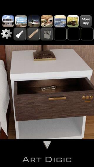 右下の扉に「カギ」を使う。