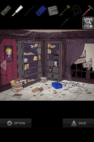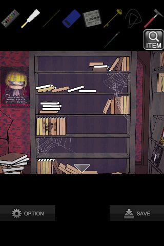 左に移動して、左の本棚の前へ。