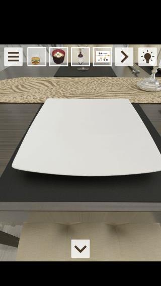 右上の皿を拡大して、「ハンバーガー」を置く。