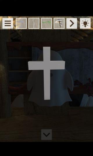 鏡の中のオバケに「魔法の杖」を使って、「十字架」を入手。