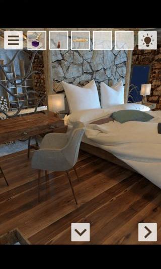 2階のベッドの上で、黒猫に「解毒剤」を使ってクリア。