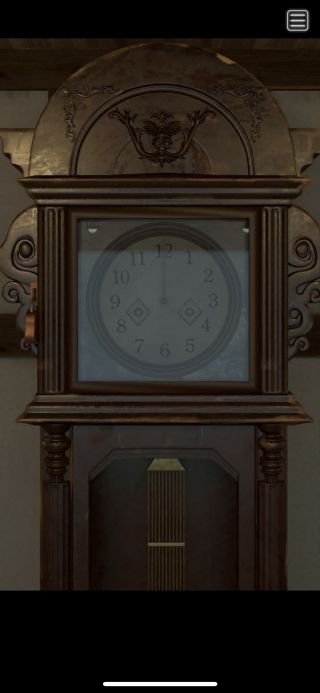 中に入って、柱時計を拡大。