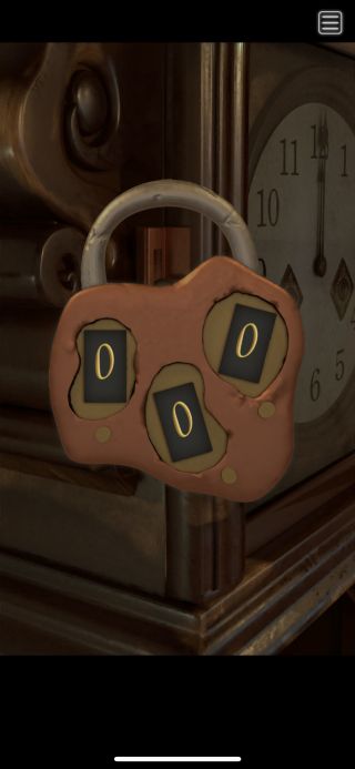 左側面の南京錠を拡大して、3つの入力装置の形を確認。