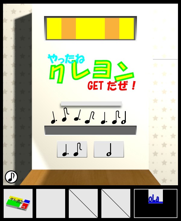 「クレヨン」をセットして、音符のとおりに下のボタンを『左左左右』の順で押す。
