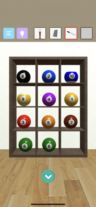 ビリヤードの玉の配置は先ほど確認した電卓の1~9のキーに対応している。