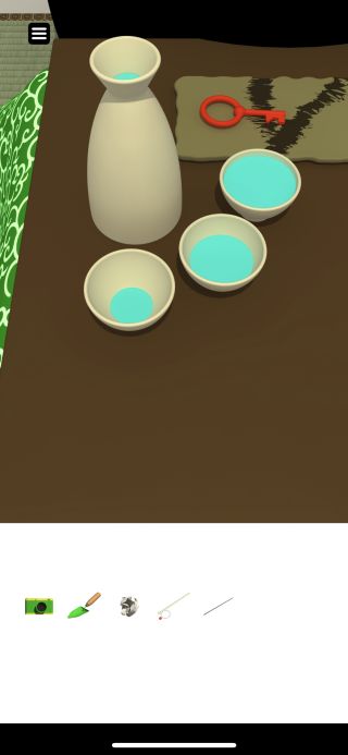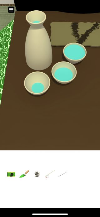 魚から出ている泡の大きさが下から順に『小中大小大中』となっているので、その順番でお猪口をタップする。