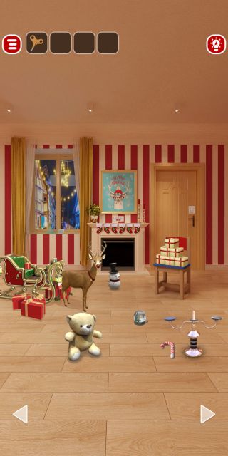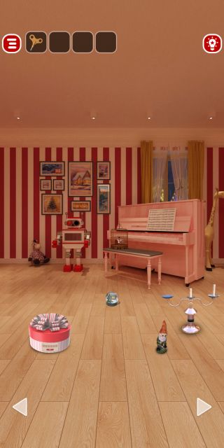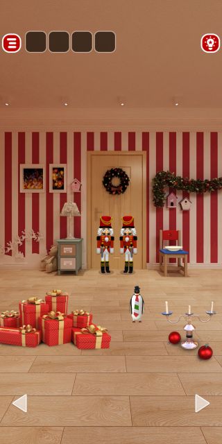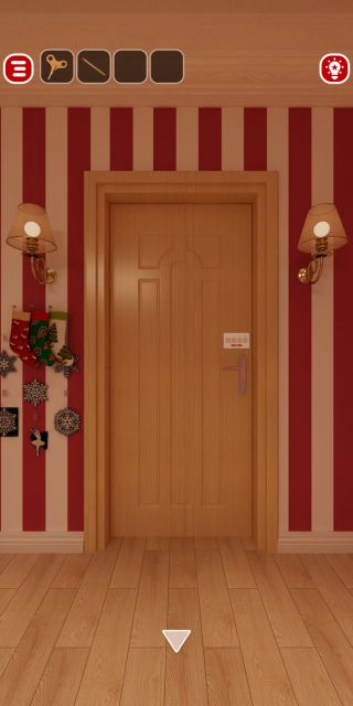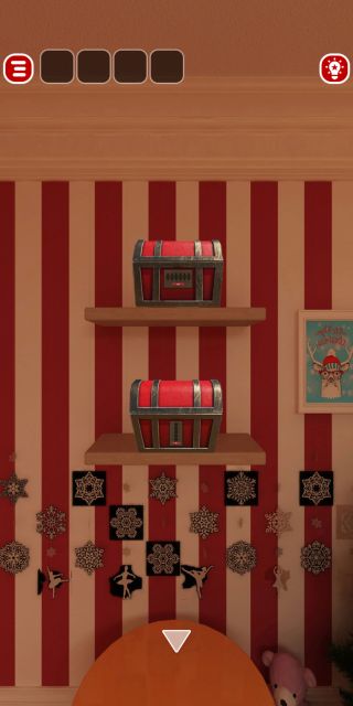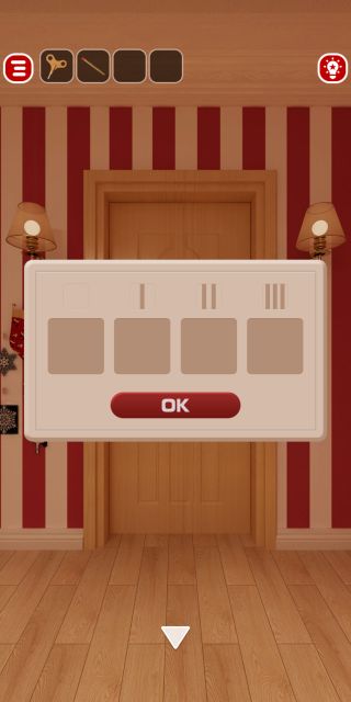 ここのヒントは、部屋の4箇所に置かれているキャンドルのロウソクの数と燭台の黒い線の数となる。