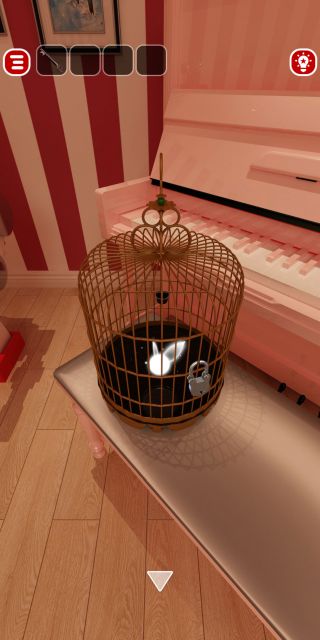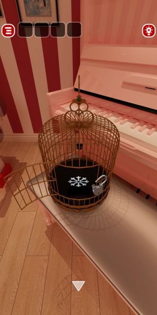 ピアノの前の鳥かごを拡大して、「カギ」で開ける。