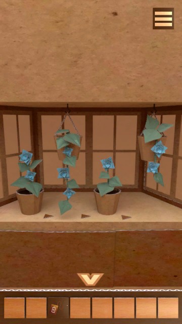 奥の観葉植物を拡大して、花の数と向き『上2、下3、上1、下2』を確認。
