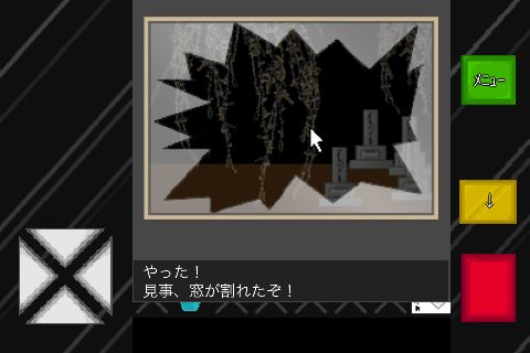 「石」で窓を割って、女性を出現させる。