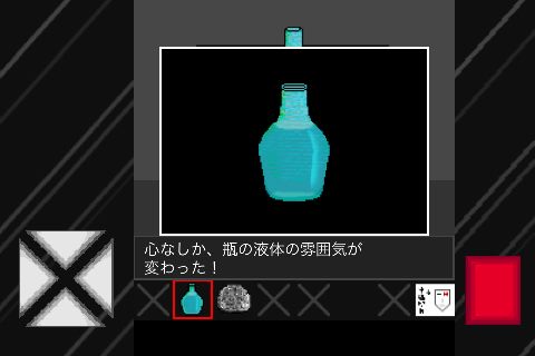 「瓶」を置くと『液体の雰囲気が変わった』と表示される。