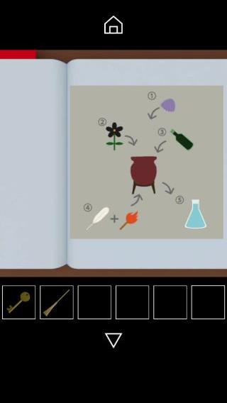 本棚の左にある試験管を拡大して、5色の色と量を確認。
