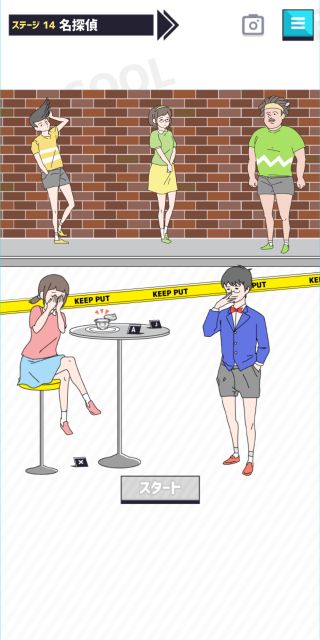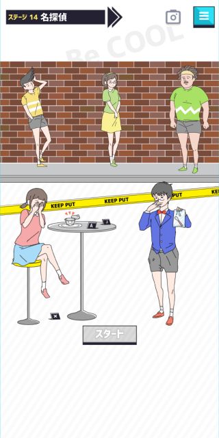 イケボーイ -脱出ゲーム 無料 4.1 評価する 送信する GLOBAL GEAR, K.K. ステージ14 名探偵 右上の太った友達にサーチライトを当てる。 頭を調べて、落ちた「証拠品」を入手。 主人公に「証拠品」を持たせて、右上の太った友達にサーチライトを当てる。 スタートを押す。 ステージ1 あいあいがさ1 ステージ2 アンバランス ステージ3 バーテンダー1 ステージ4 リフティング ステージ5 階段すべり ステージ6 ゴミ箱シュート ステージ7 荷物はこび ステージ8 ゲームセンター1 ステージ9 テーブルクロス ステージ10 バーベルあげ ステージ11 あいあいがさ2 ステージ12 ボールまわし ステージ13 ゲームセンター2 ステージ14 名探偵 ステージ15 公園デート ステージ16 きもだめし ステージ17 バレンタインチョコ ステージ18 演劇スター ステージ19 はち騒動 ステージ20 射的 ステージ21 バーテンダー2 ステージ22 荒野の決闘 ステージ23 ソロコンサート ステージ24 原始時代 ステージ25 クッキング ステージ31 プロポーズ シールコレクション No.001~010 シールコレクション No.011~020 シールコレクション No.021~030 シールコレクション No.031~040 シールコレクション No.041~050 シールコレクション No.051~060 シールコレクション No.061~070 シールコレクション No.071~080 シールコレクション No.081~090 シールコレクション No.091~100 ステージ26 ウイルス撃退 ステージ27 アンバランス2 ステージ28 応援合戦 ステージ29 ヒロイン救出 ステージ30 伝説の剣 シールコレクション No.101~110 シールコレクション No.111~117